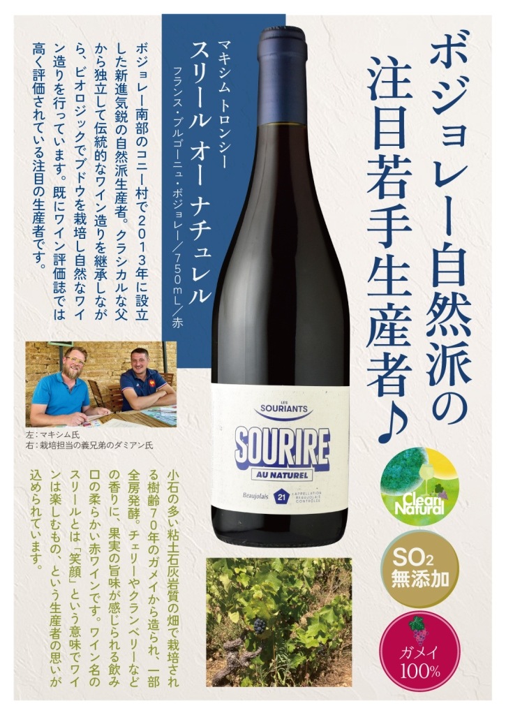 自然と、じゅわっと、すぅっと体に染み込むような独自の味わいを【CleanNatural】としてセレクトしました。ぶどう本来の味わいが感じられるナチュラルワイン!