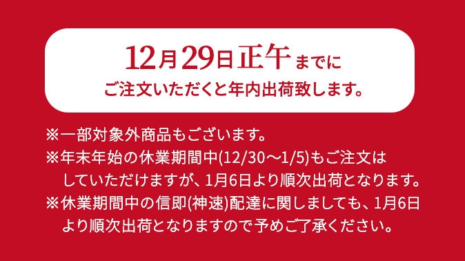 なお、年内出荷分の受付は2025年12月29日(月)正午までとさせていただきます。